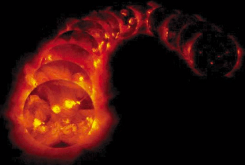 The Changing Sun. These 13 x-ray images, obtained by the Yohkoh spacecraft between 1991 and 1995, provide a dramatic view of the Sun, highlighting how the solar corona changes during the waning part of the solar cycle as the Sun goes from an “active” state (left) to a more passive state (right). Source: NASA.