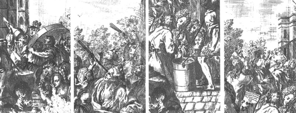 Fig. 2 – The solar eclipse of 1715. Visible as partial at Paris, it provided the chance to observe the event in various ways: directly through telescopes, smoked glass, pinholes, sieves, and various filters, or indirectly by reflection in a bucket of water. Source: Bibliothèque nationale de France (BnF).