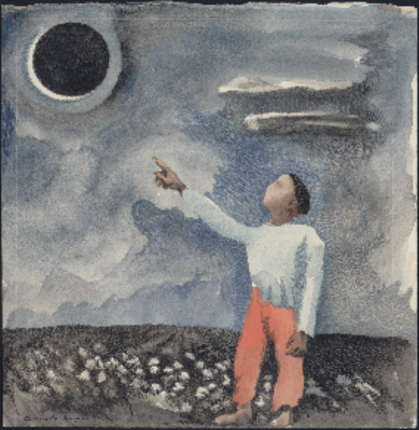 Fig. 3 – Nat Turner points at a lunar eclipse. He foresees the rebellion that would take place with the eclipsed Moon. Credit: Bernarda Bryson.