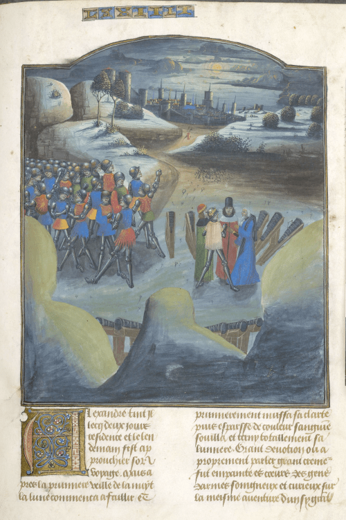 Alexander the Great consulting his astrologers about a solar eclipse after the Battle of Arbela: British Library Burney MS 169, f. 69r. Public domain image. Source: https://blogs.bl.uk/digitisedmanuscripts/2017/08/total-eclipse-of-the-sun.html