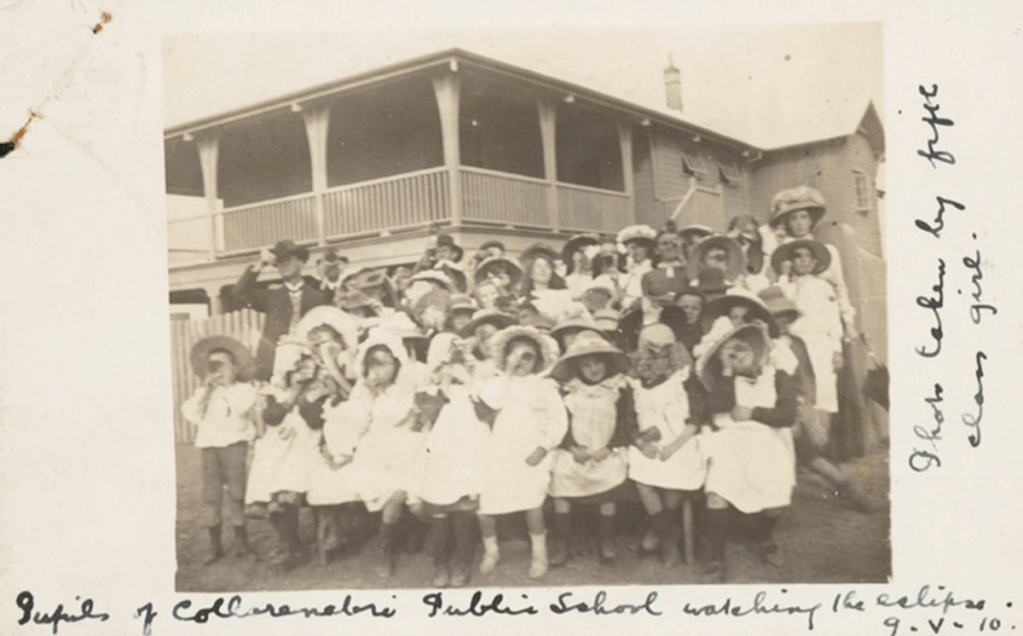 Children from the Collarenebri Public School watch the eclipse over New South Wales, Australia, 1910. NSW State Archives & Records/ Public Domain