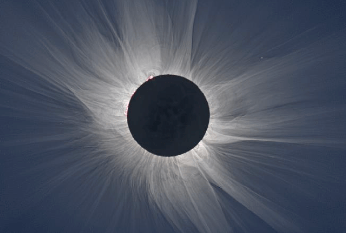 Below, we can see an image of the solar corona from a distance… It is beautiful… Looks like science fiction…